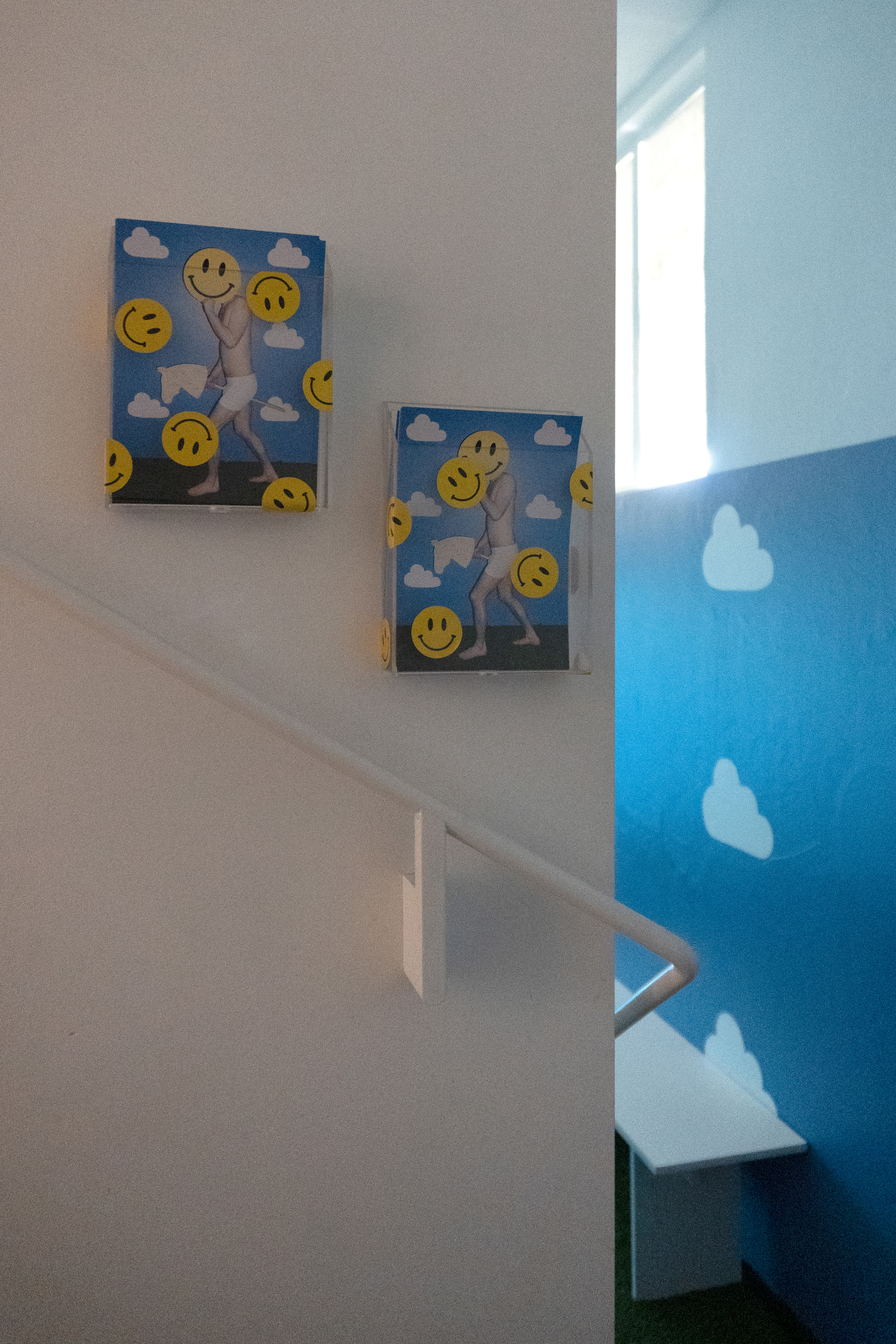 The riders go across the screen from right to left, from future to past, all looking the same whilst riding silly hobby horses. Everything about the video and installation is artificial, the grass, the sky, the horses, the circumstances, and the smiles - imitating the modern dating world where people hide behind carefully curated images and fake smiles.