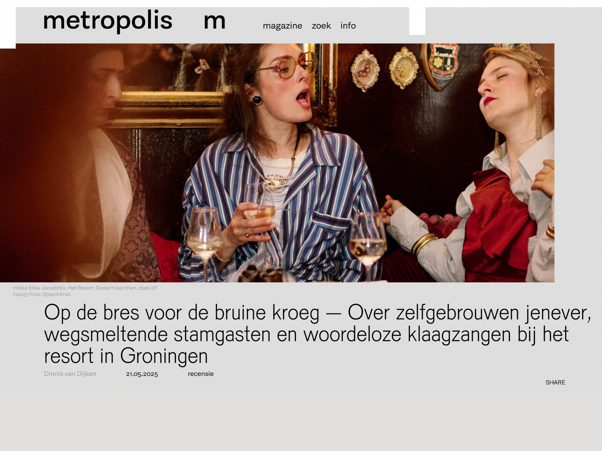 ‘Op de bres voor de bruine kroeg – Over zelfgebrouwen jenever, wegsmeltende stamgasten en woordeloze klaagzangen bij het resort in Groningen‘ by Dinnis van Dijken on Metropolis M. Full article in Dutch here.
