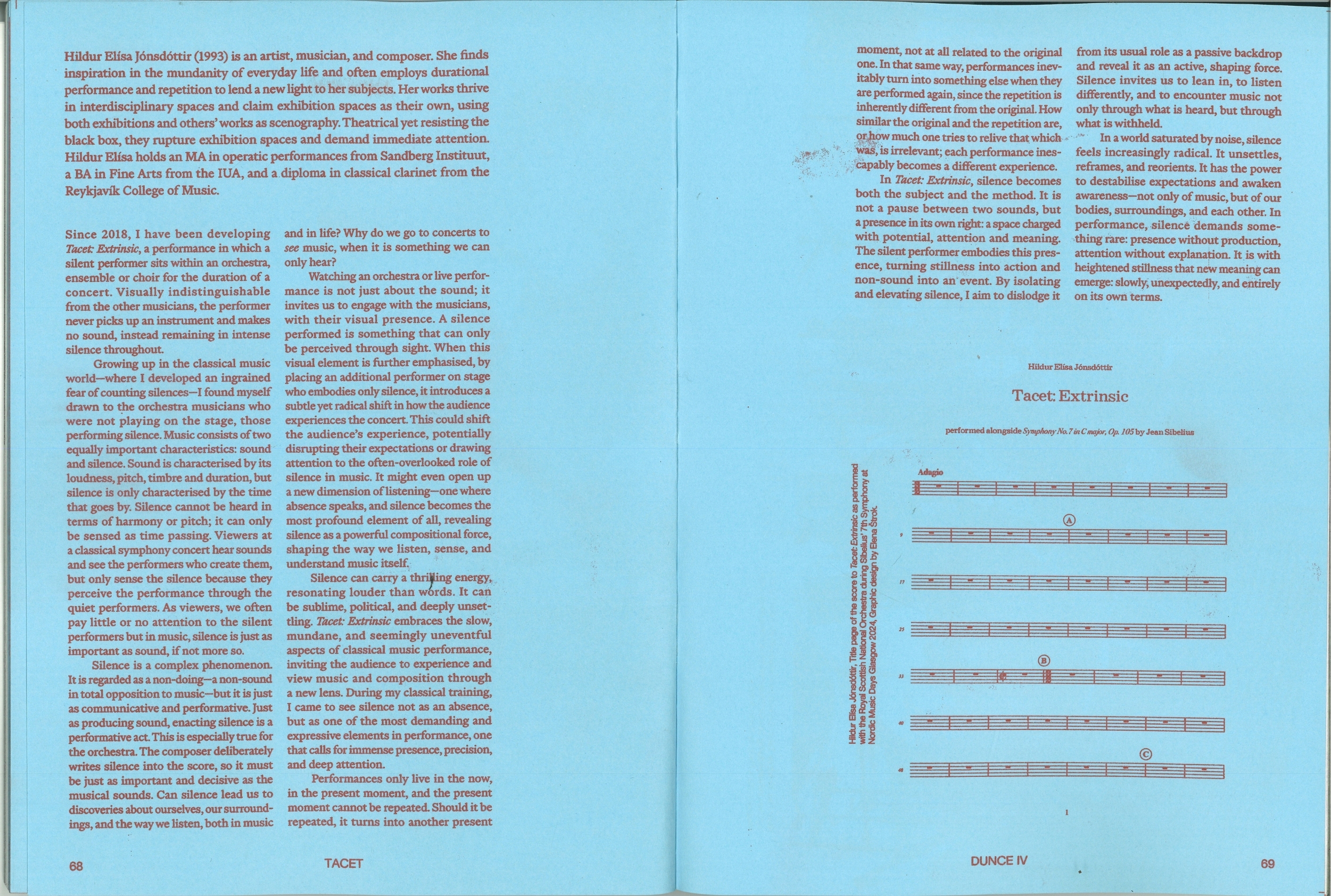 ‘TACET: On Silence, Presence, and Performance’ by Hildur Elísa Jónsdóttir in Dunce Magazine, issue no. four (2025)