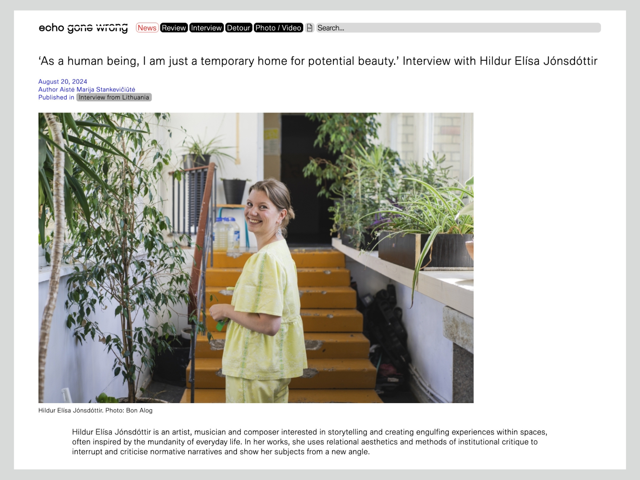 ‘As a human being, I am just a temporary home for potential beauty.’ Interview with Hildur Elísa Jónsdóttir by Aistė Marija Stankevičiūtė for echo gone wrong (2024). Full interview in English here.
